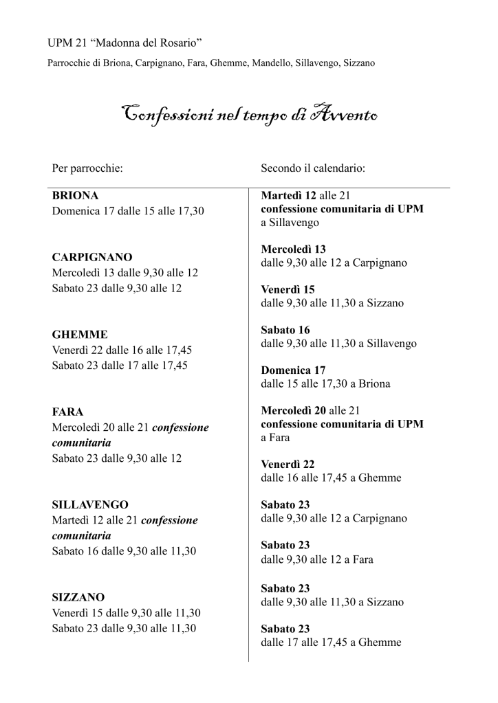 CONFESSIONI NEL TEMPO DI AVVENTO